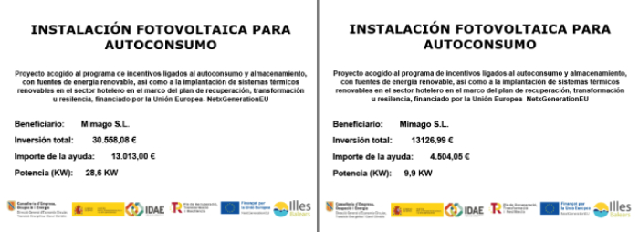 Este proyecto ha sido financiado por la Unión Europea – NextGenerationEU, en el marco del Plan de Recuperación, Transformación y Resiliencia, a través del programa de ayudas gestionado por el Govern de les Illes Balears para instalaciones de energía solar fotovoltaica destinadas al autoconsumo.